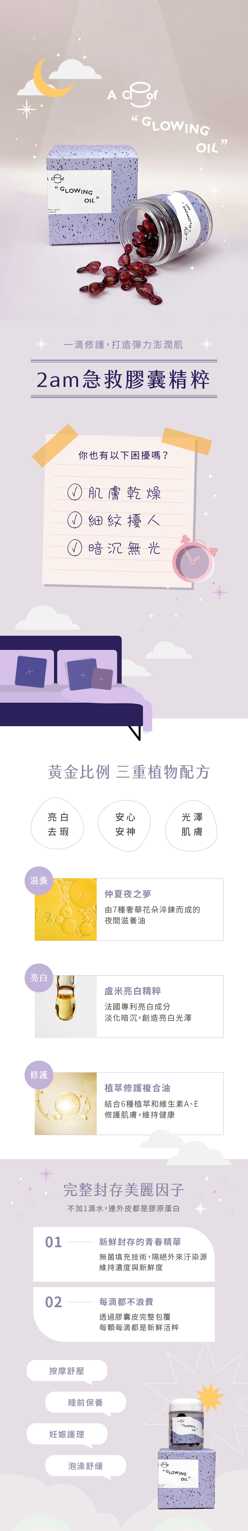 黃金比例三重植物配方,完整封存美麗因子,小分子油,潤而不油,不膩部悶,寧靜夜晚思緒最好的安撫複方精油。